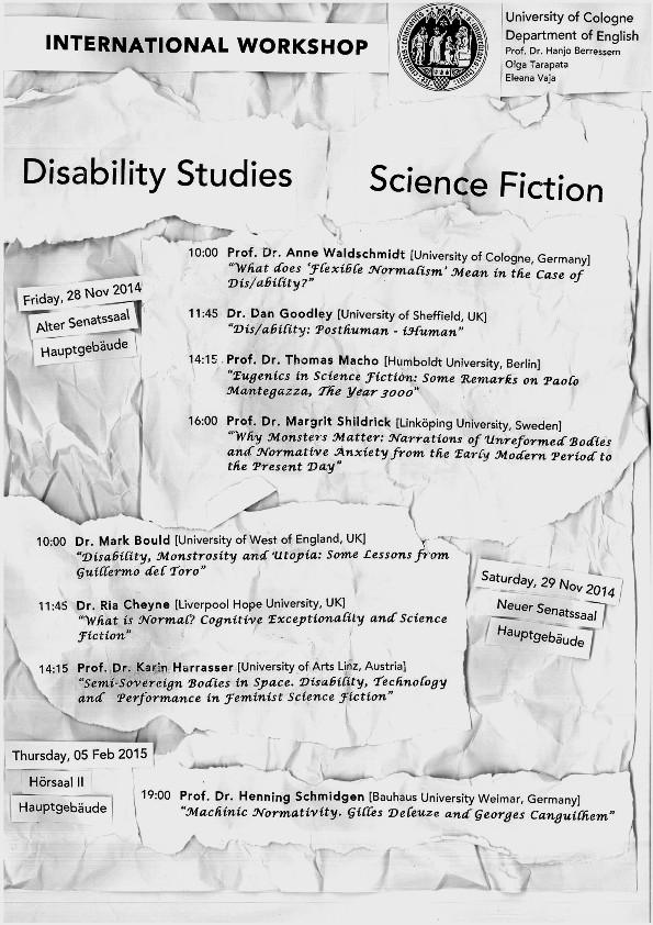 “What is Normal? Cognitive Exceptionality and Science Fiction.” Invited talk. Disability Studies Science Fiction International Workshop, University of Cologne, Germany, November 2014. Powerpoint.